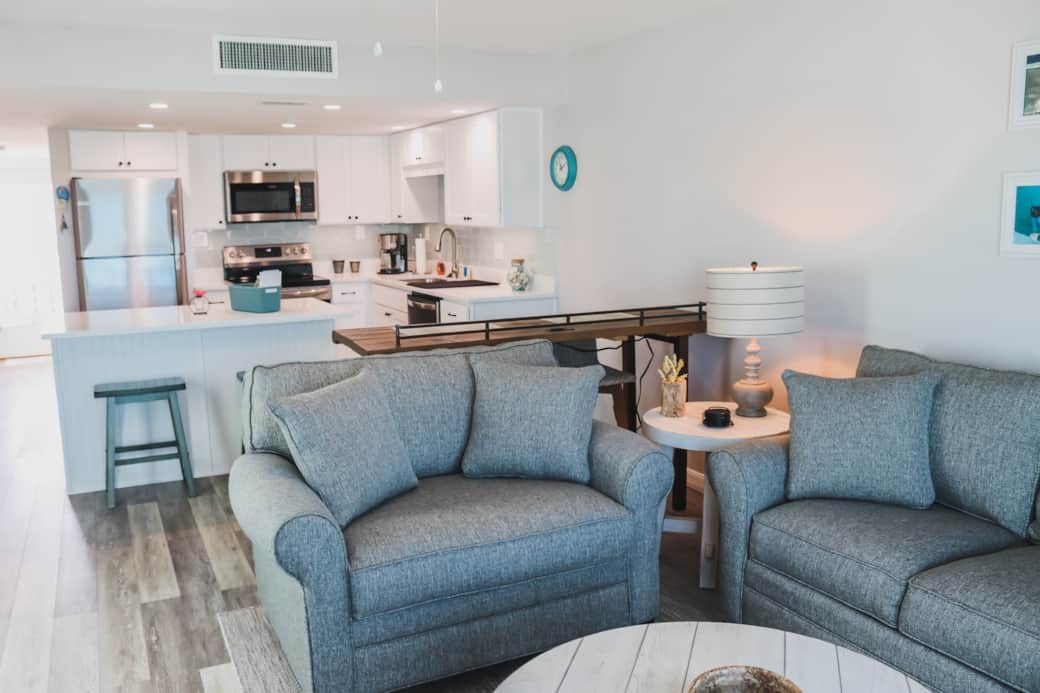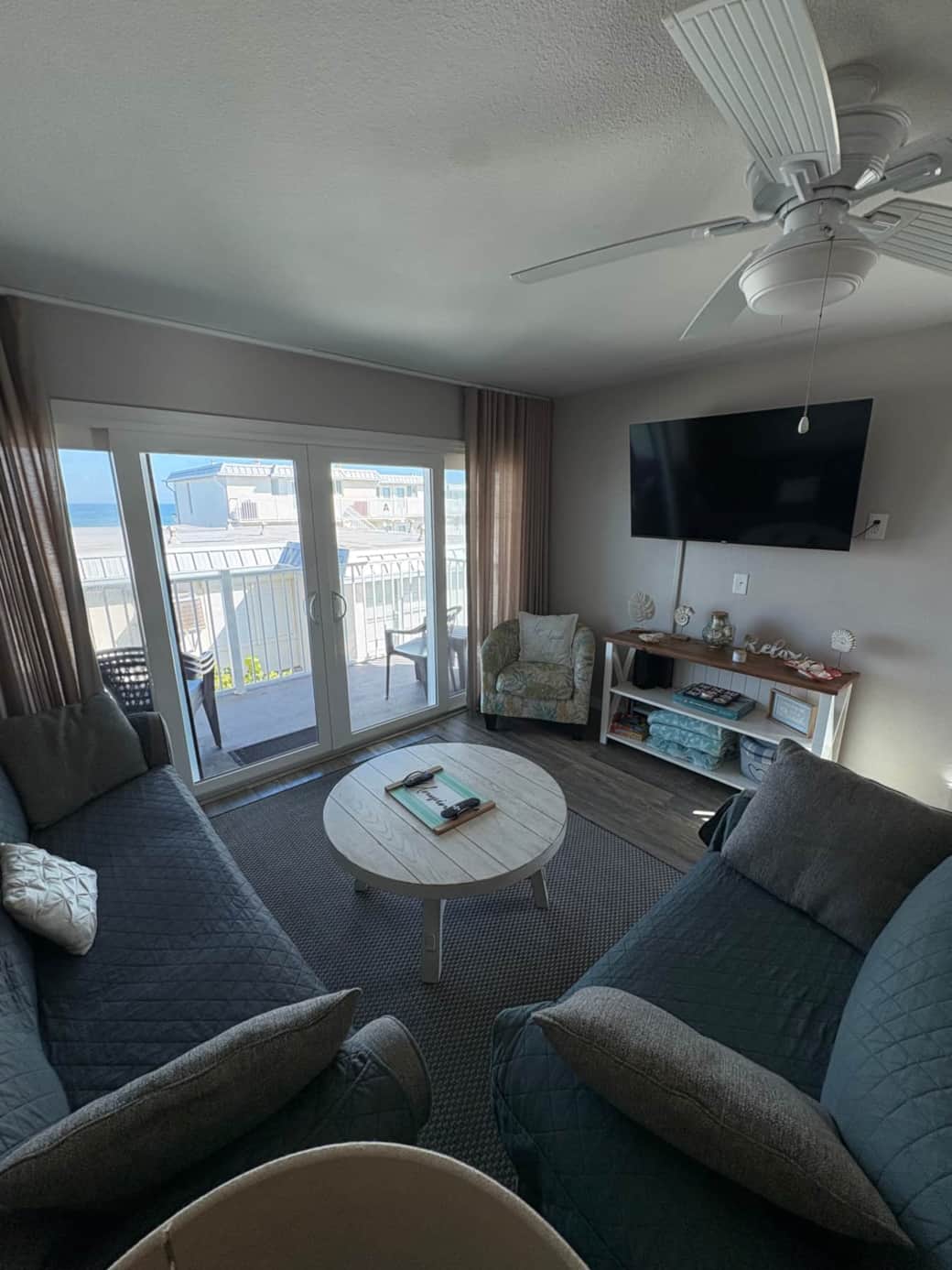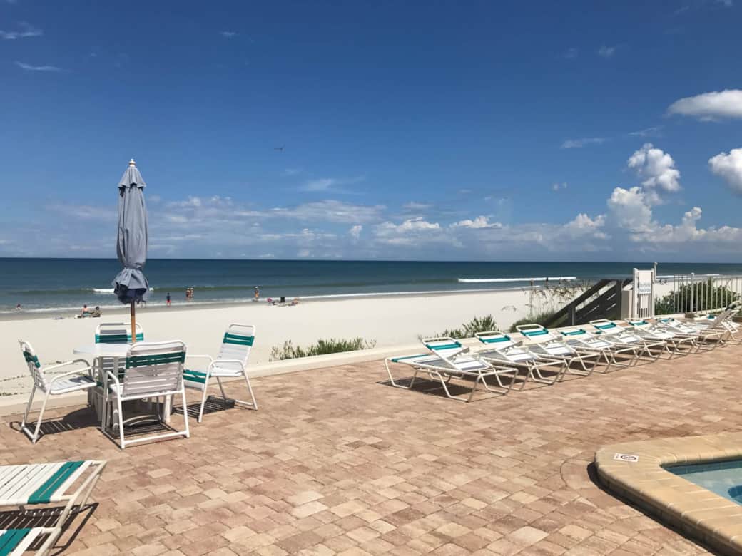 We’re located at Ocean Club South on the no-drive end of New Smyrna Beach. The unit isn’t directly oceanfront, but you can see the beach from the balcony, and the walk to the sand is quick and easy within the complex.
